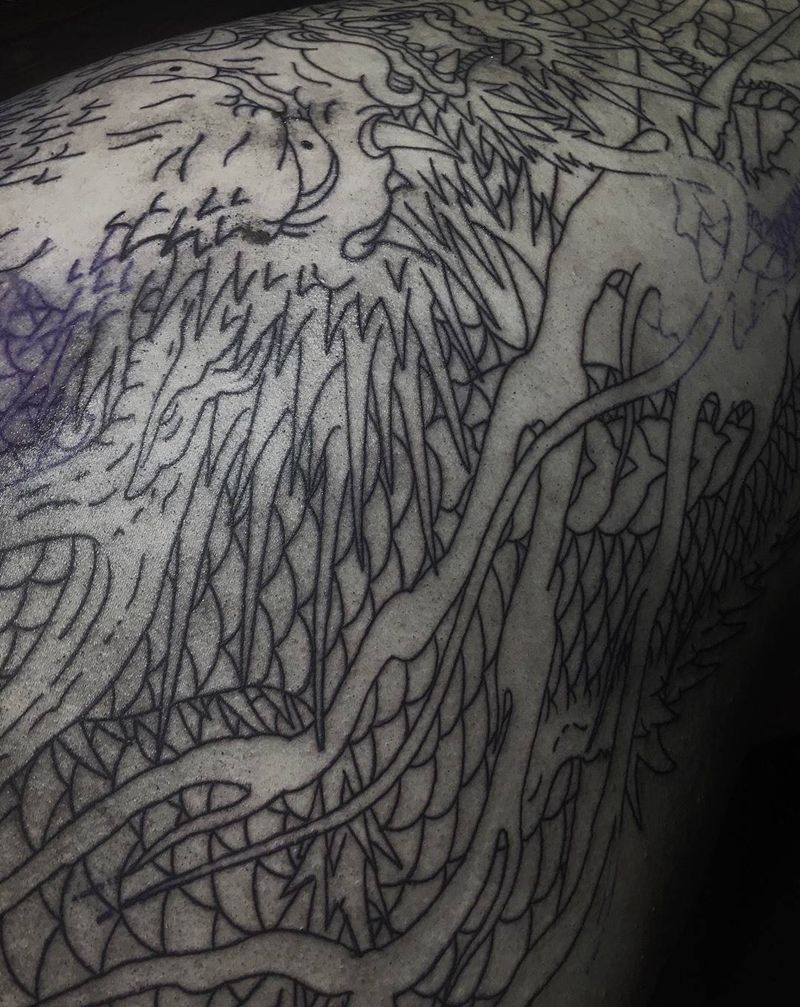 • T网红王老大花腿龙纹身图片_腿部新传统纹身图案