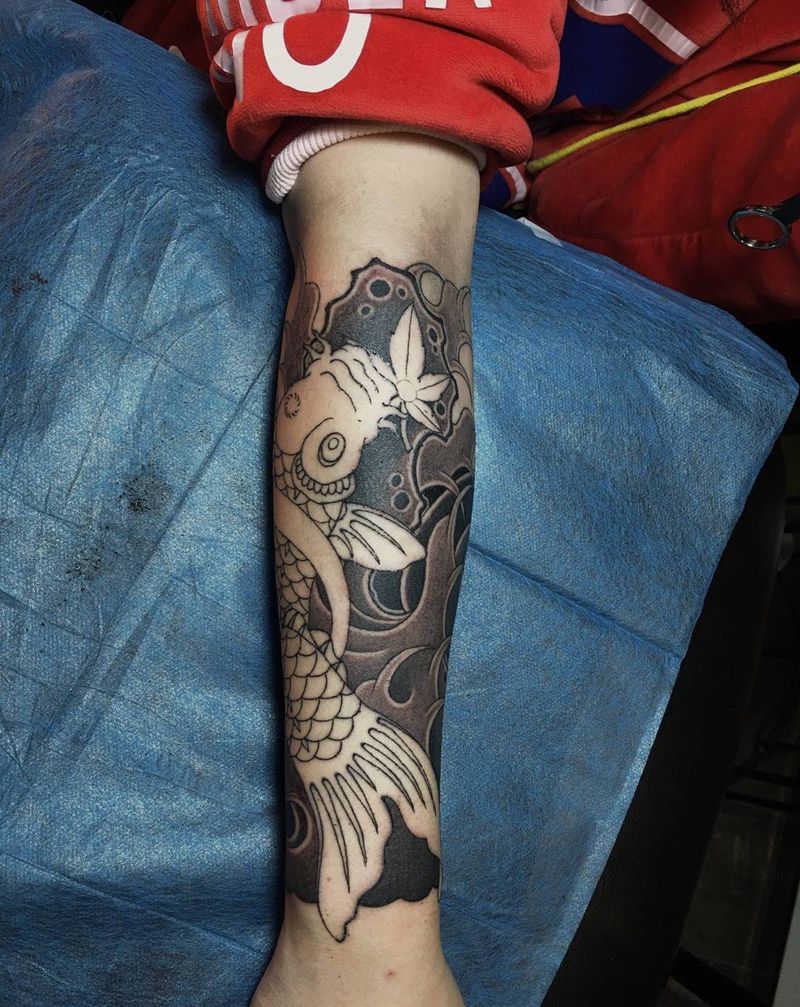 当前位置: 首页 >江苏省无锡市纹身店-浪客纹身工作室纹身图案>鲤鱼花臂纹身图片