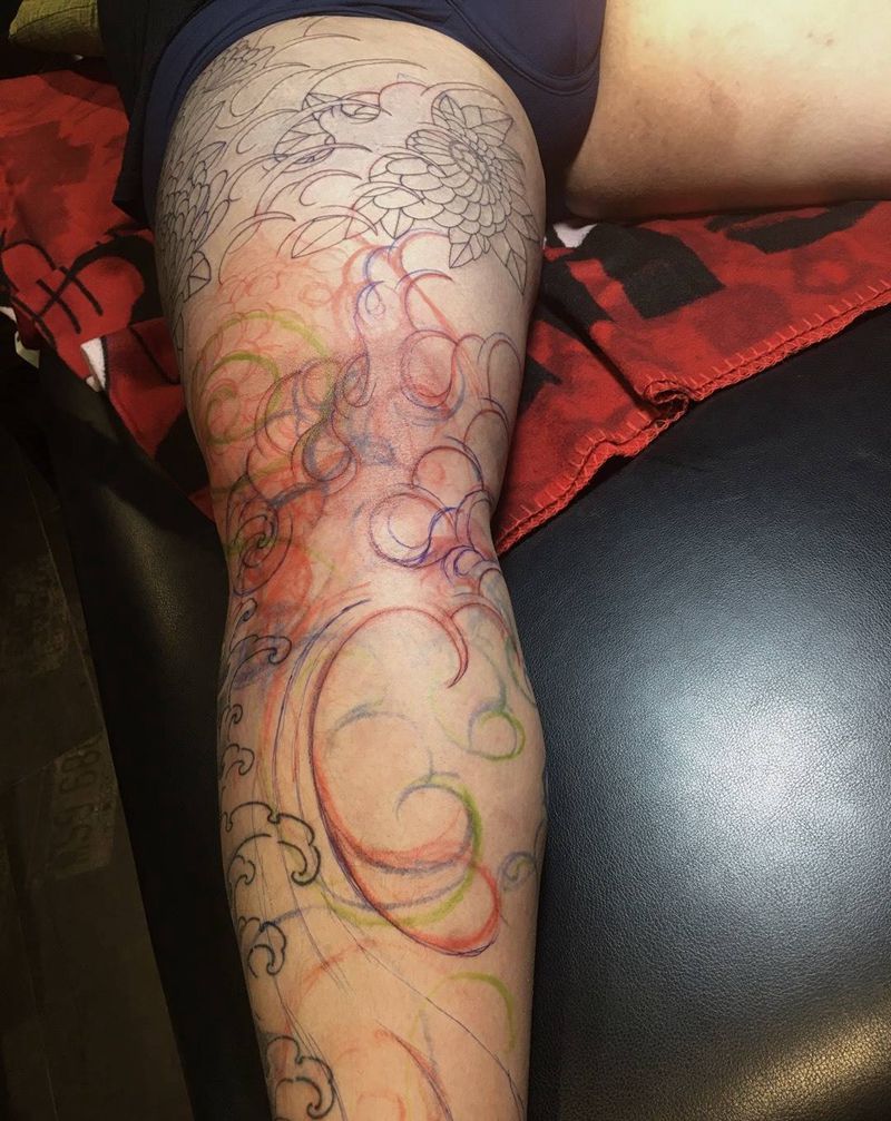 • T网红王老大花腿龙纹身图片_腿部新传统纹身图案