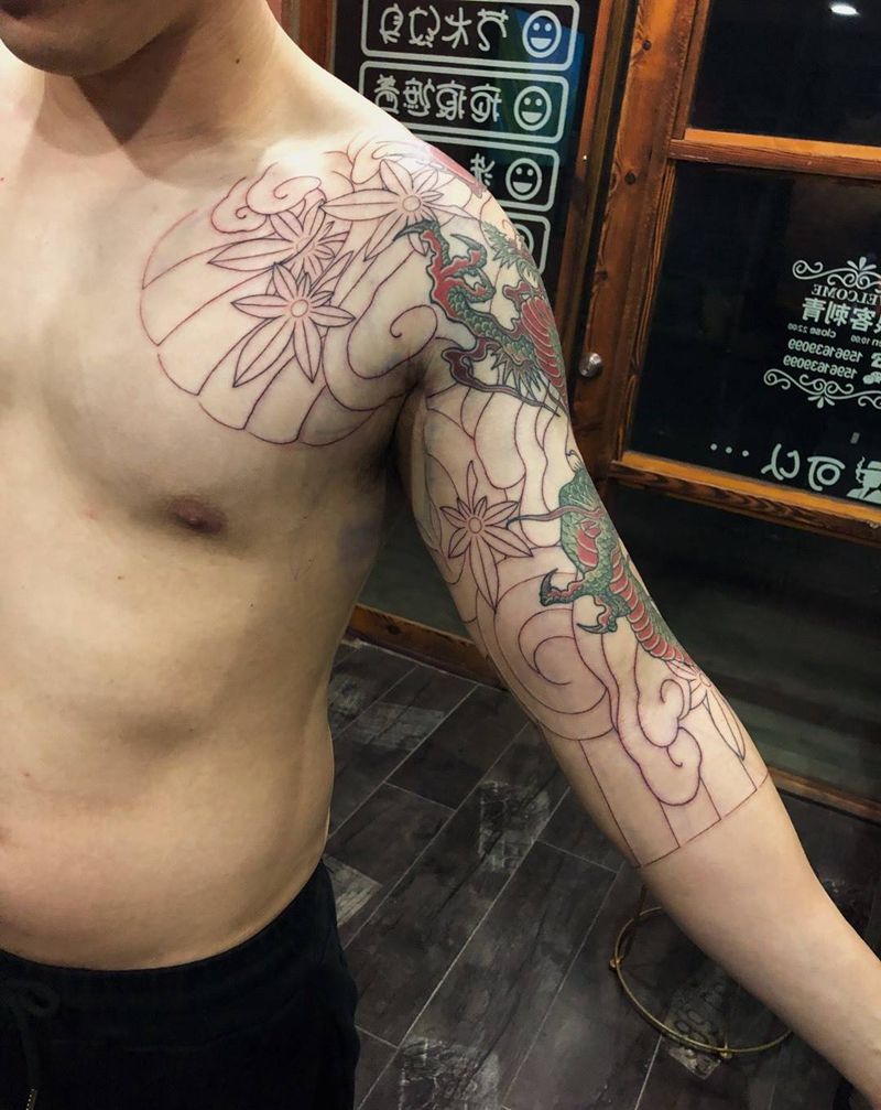 当前位置: 首页 >江苏省无锡市纹身店-浪客纹身工作室纹身图案>半甲花臂纹身图片
