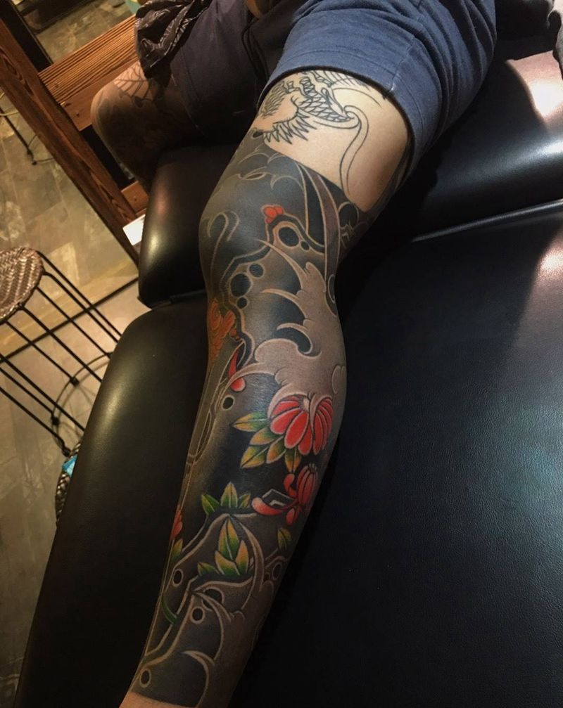 • T网红王老大花腿龙纹身图片_腿部新传统纹身图案