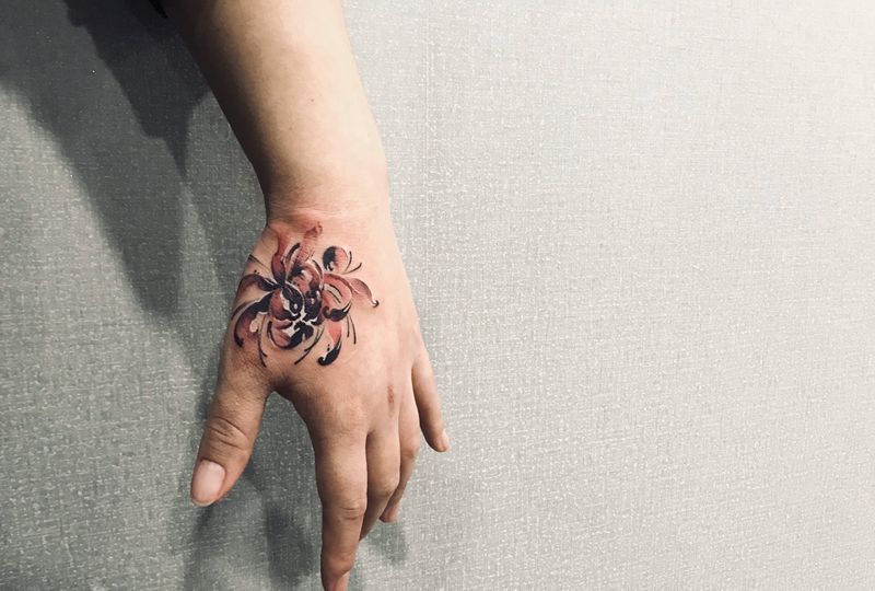 当前位置: 首页 >江苏省无锡市纹身店-源·TATTOO纹身图案>曼珠沙华纹身图片_手部水墨纹身图案