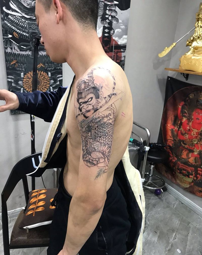 当前位置: 首页 >江苏省无锡市纹身店-源·TATTOO纹身图案>大圣遮盖作品纹身图片