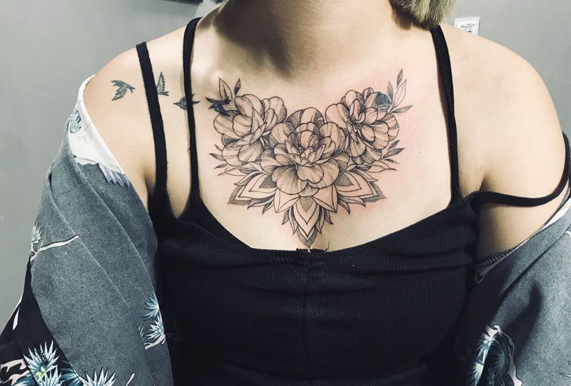 • 女性大花胸纹身_43张霸气漂亮的女性大花胸纹身图案作品
