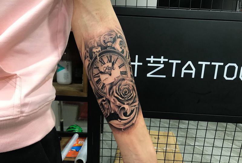 当前位置: 首页 >江苏省无锡市纹身店-源·TATTOO纹身图案>钟表玫瑰骷髅纹身图片_欧美写实纹身图案
