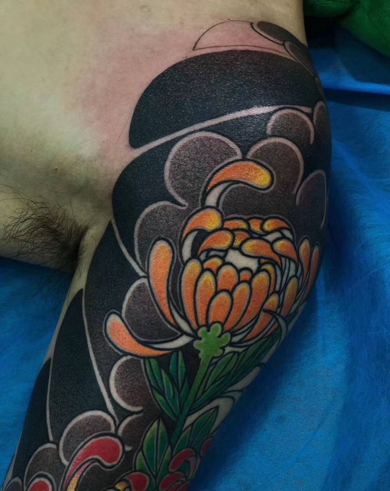 • T网红王老大花腿龙纹身图片_腿部新传统纹身图案