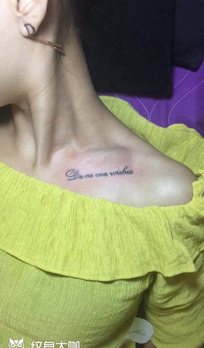 当前位置: 首页 >江苏省徐州市纹身店-徐州龍刺青文艺工作室纹身图案>锁骨英文纹身图片_成品肩部清新字符纹身图案