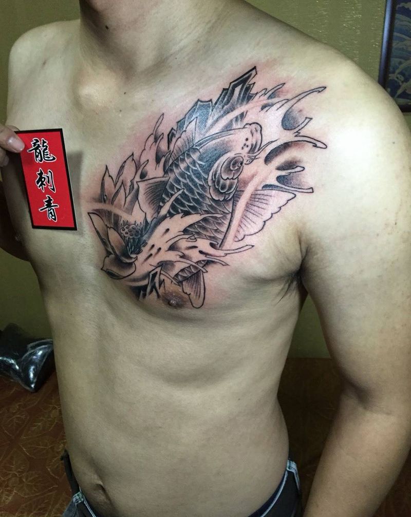 当前位置: 首页 >江苏省徐州市纹身店-徐州龍刺青文艺工作室纹身图案>遮盖鱼纹身图片_成品胸部传统动物纹身图案