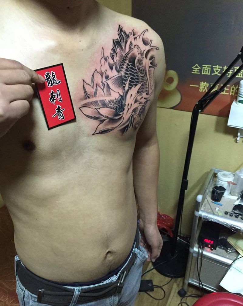 当前位置: 首页 >江苏省徐州市纹身店-徐州龍刺青文艺工作室纹身图案>遮盖鱼纹身图片_成品胸部传统动物纹身图案