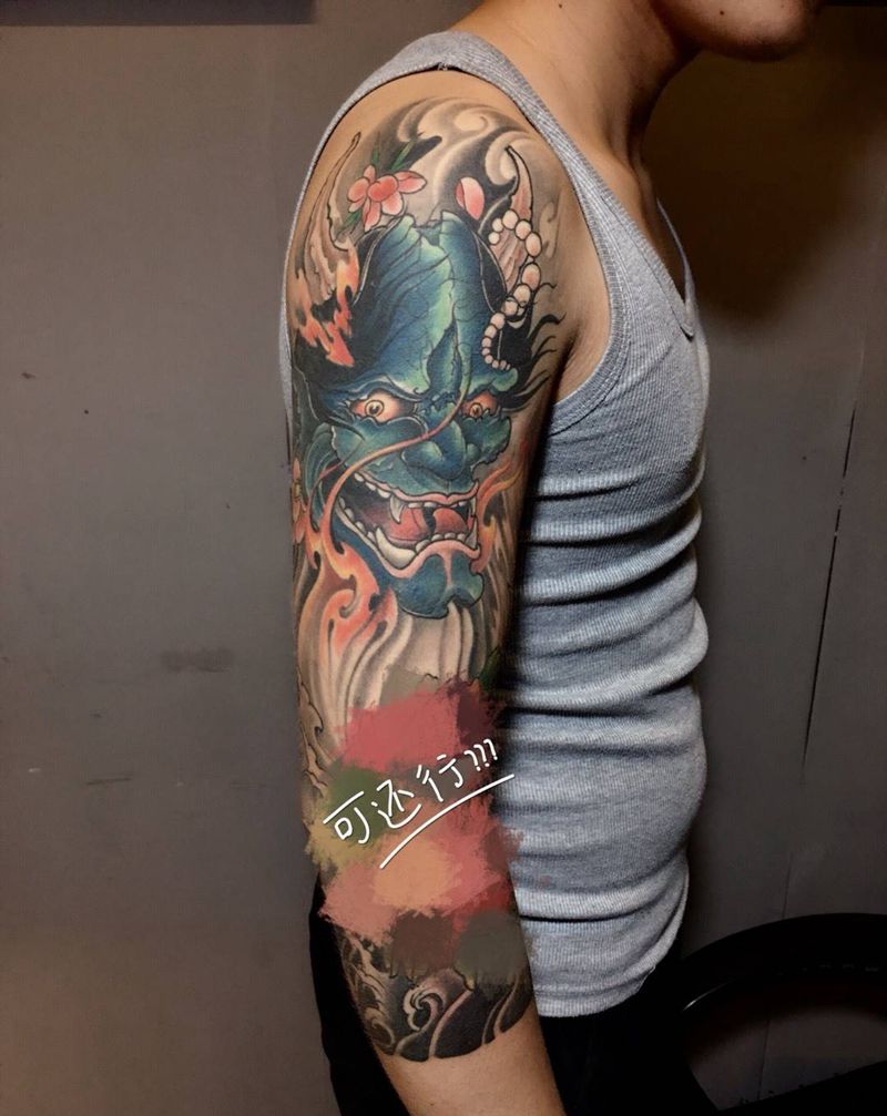 般若。鲤鱼七分袖纹身图片