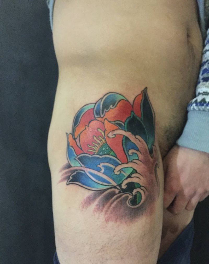 • T网红王老大花腿龙纹身图片_腿部新传统纹身图案