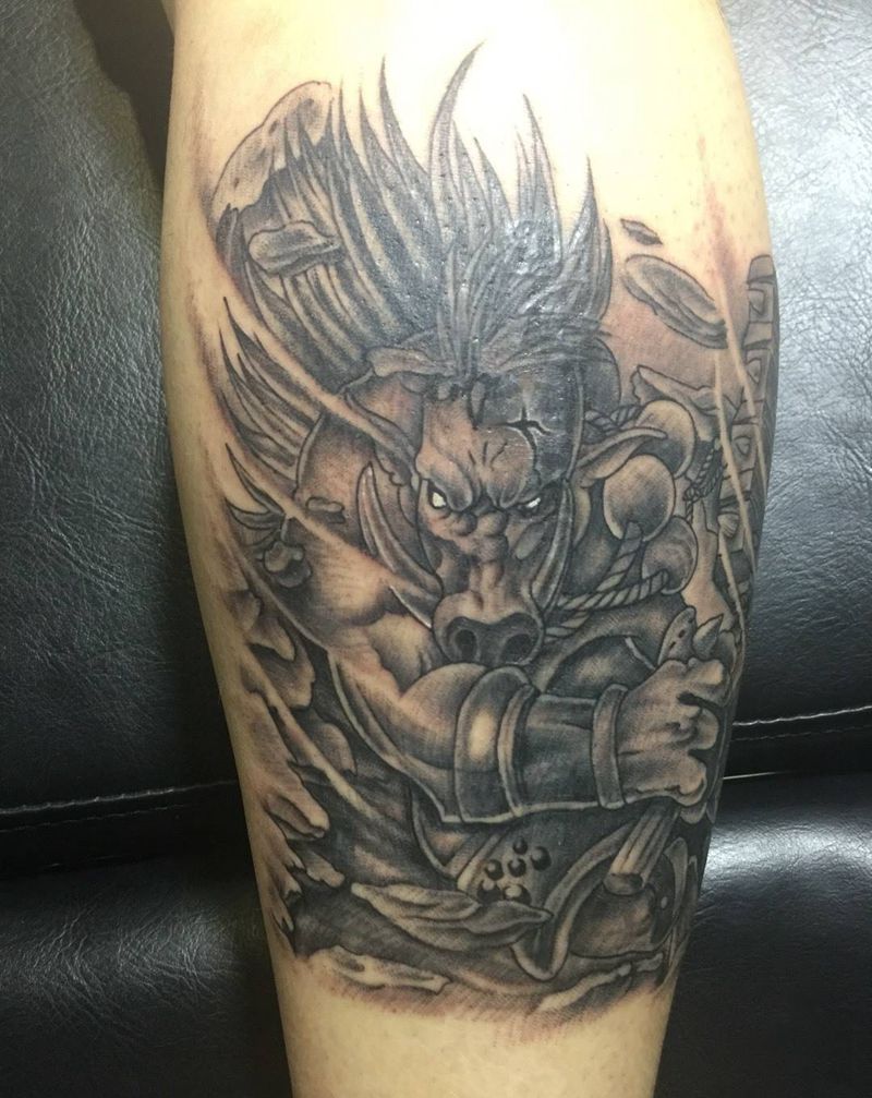 • T网红王老大花腿龙纹身图片_腿部新传统纹身图案