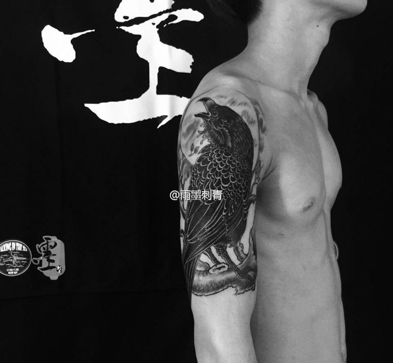 乌鸦纹身图片_成品手臂传统动物雨墨刺青宜兴无锡.纹身图案