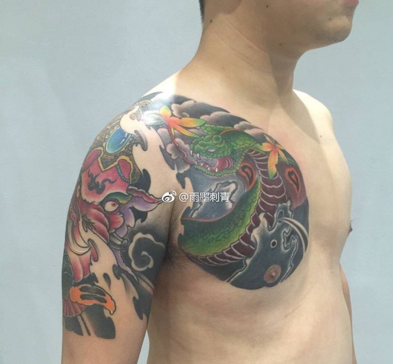 • 纹身吧推荐的披肩图腾半胛纹身图案作品展示