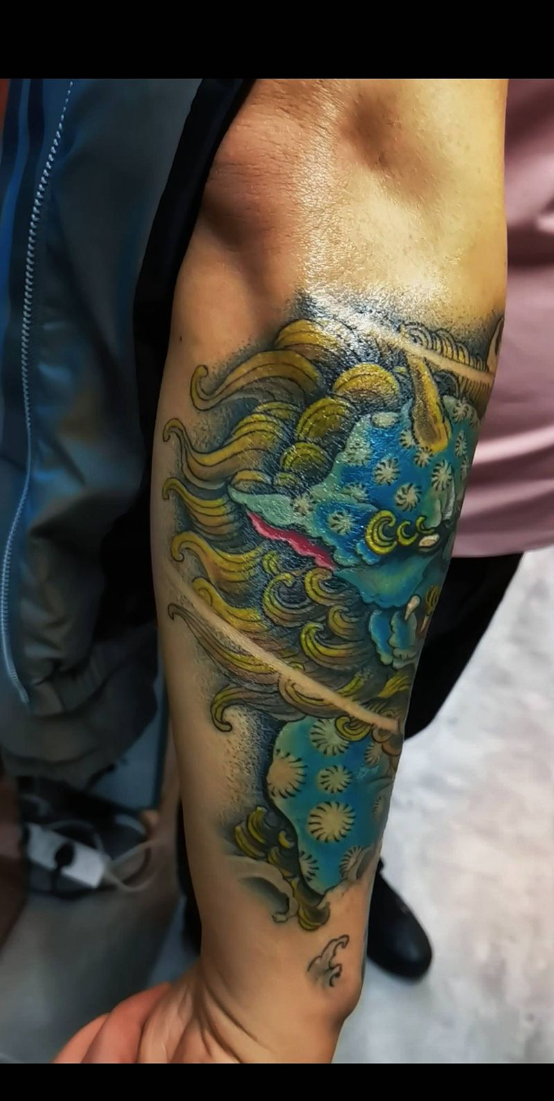 当前位置: 首页 >江苏省徐州市纹身店-宋方亮刺青阁纹身图案>唐狮踏般若纹身图片_手臂新传统纹身图案