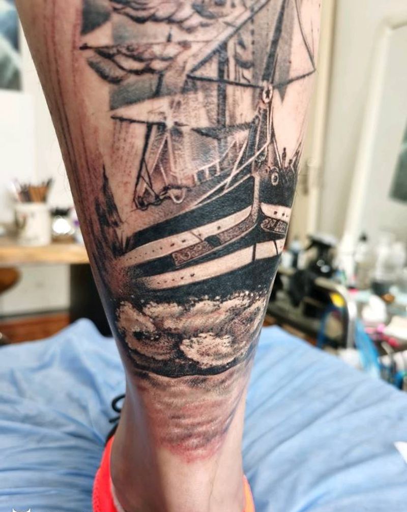 乘风破浪纹身图片_腿部欧美写实纹身图案