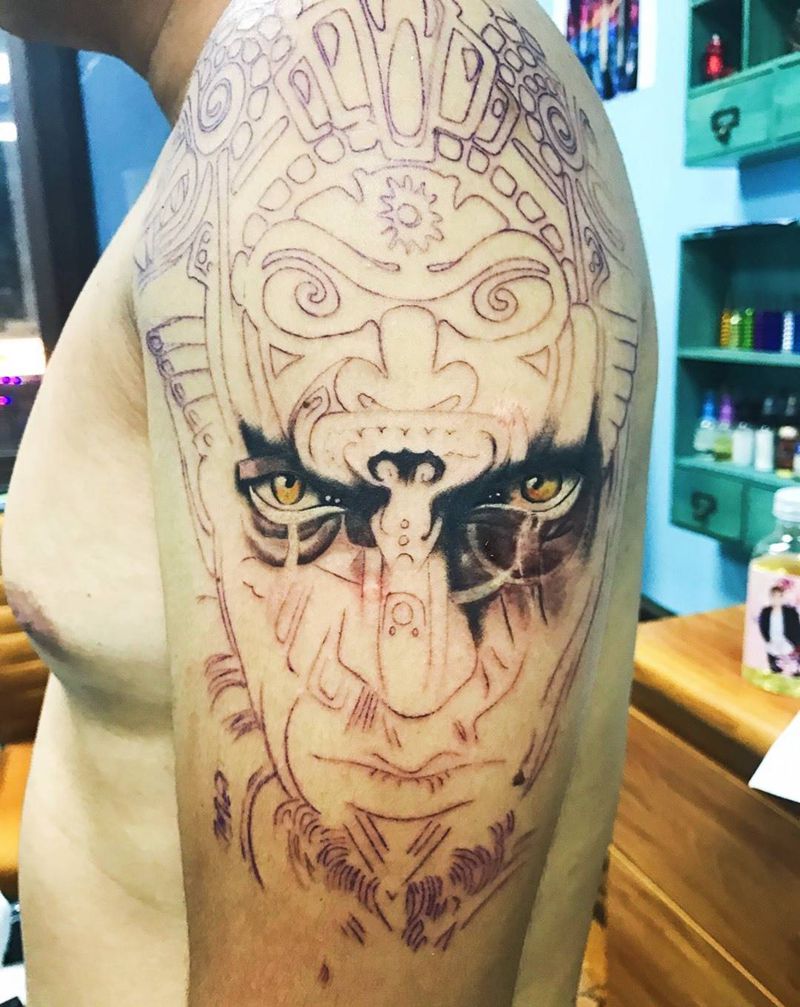• 纹身吧推荐的披肩图腾半胛纹身图案作品展示