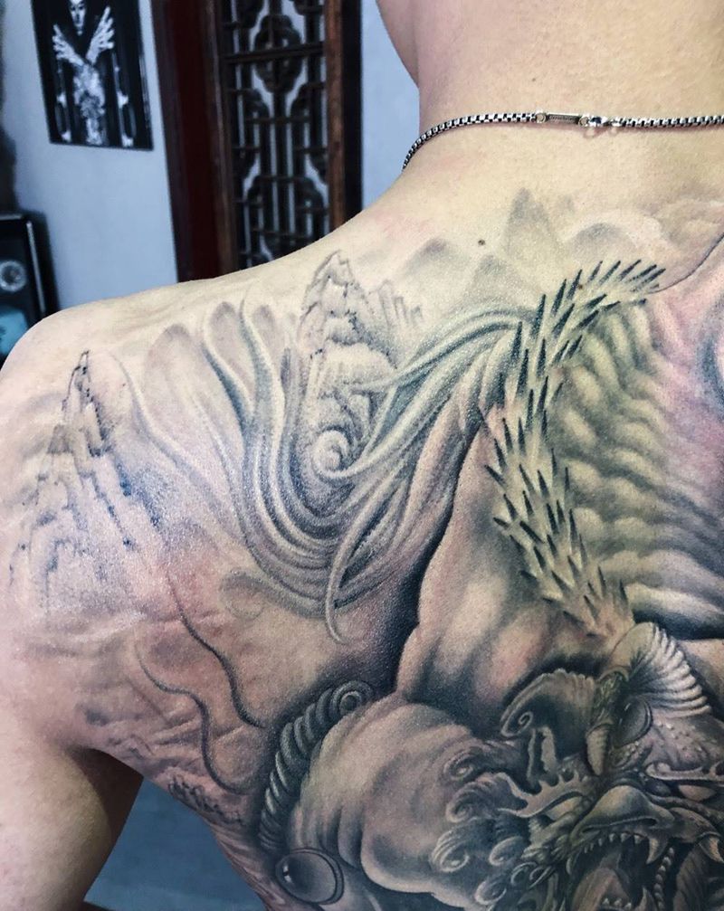 • T云龙九郎纹身图片_背部老传统云龙九郎纹身图案