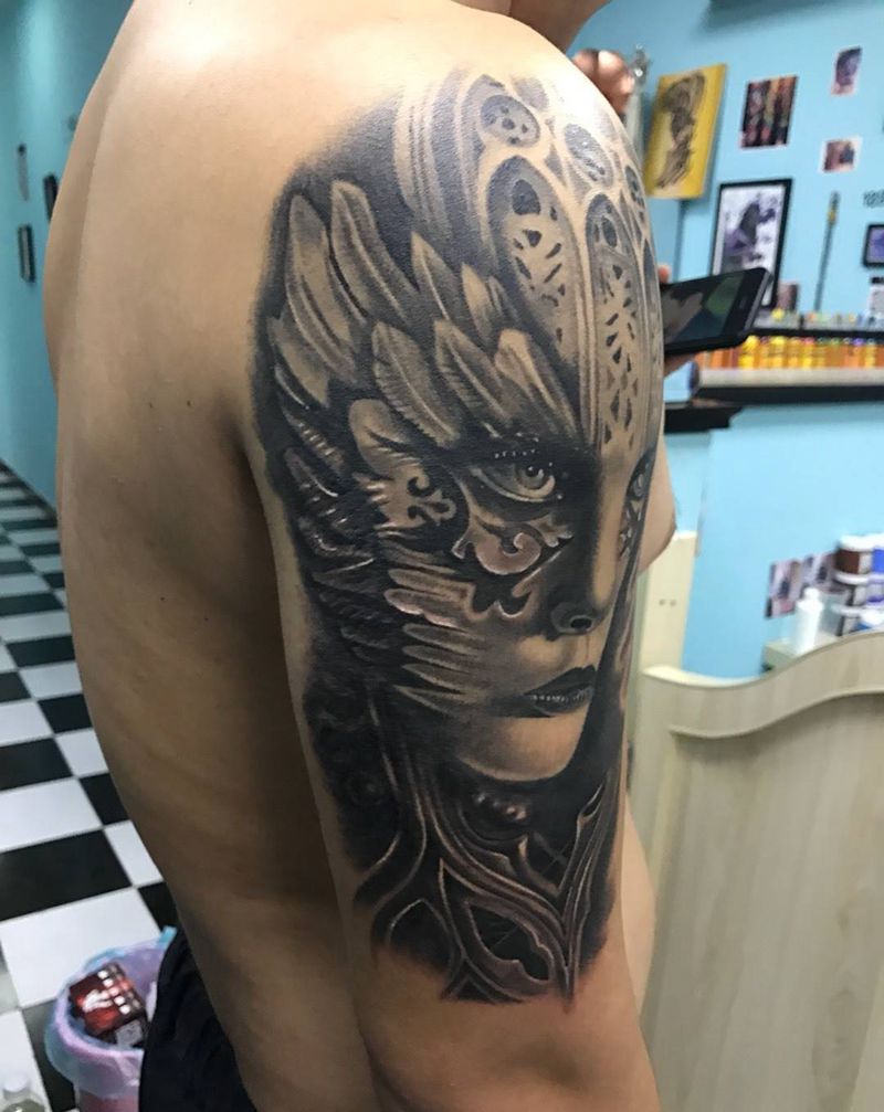 • 纹身吧推荐的披肩图腾半胛纹身图案作品展示