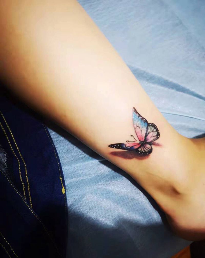 蝶纹身图片_脚部欧美写实纹身图案