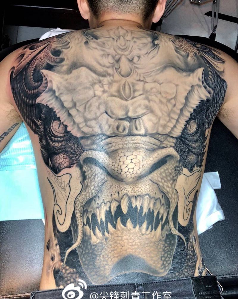黑灰满背纹身图案