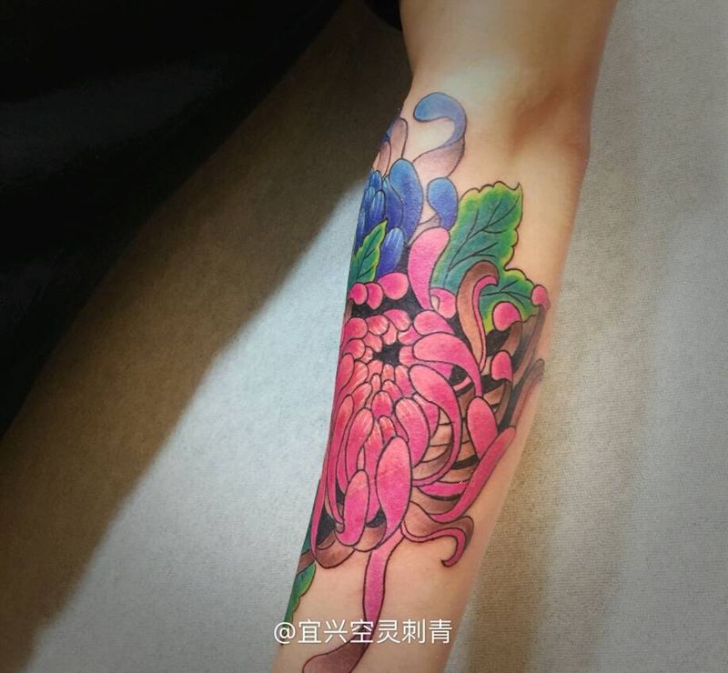 当前位置: 首页 >江苏省无锡市纹身店-宜兴·空灵刺青纹身图案>菊花纹身图片