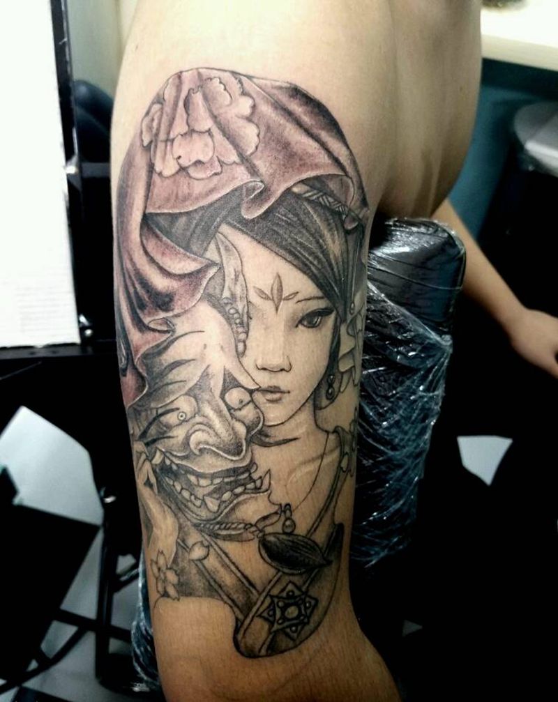 当前位置: 首页 >江苏省徐州市纹身店-针命天子·刺青纹身图案>艺妓般若纹身图片