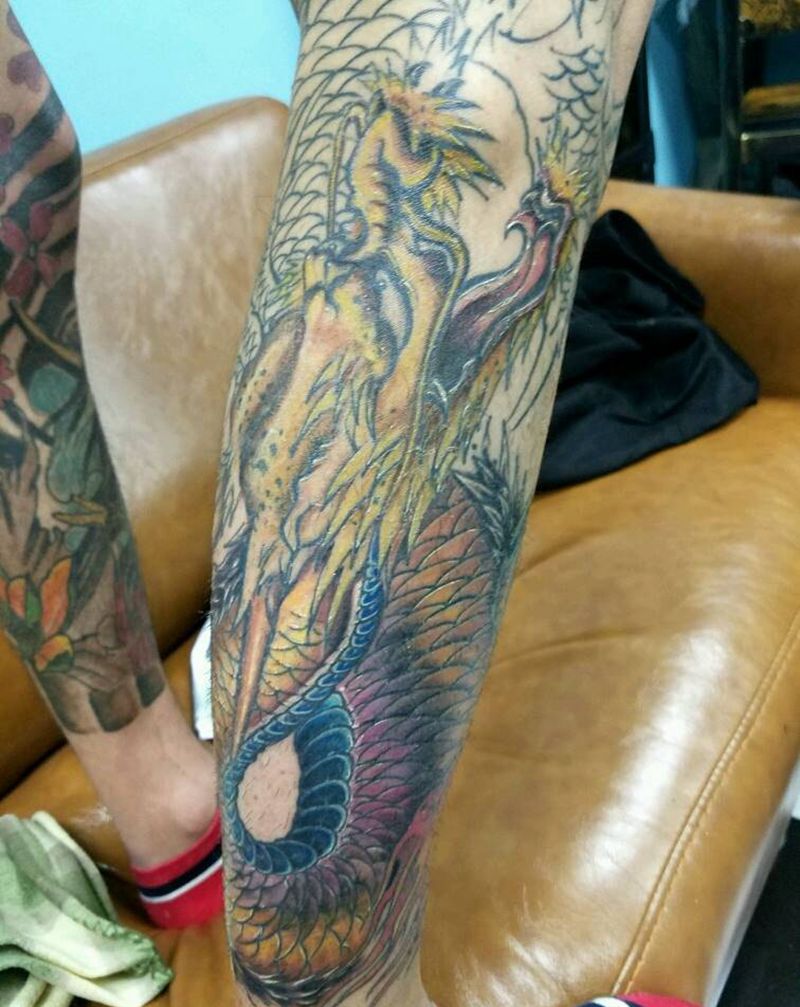 当前位置: 首页 >江苏省徐州市纹身店-针命天子·刺青纹身图案>小腿龙上色完成纹身图片