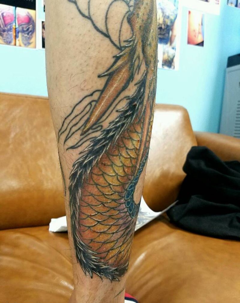 当前位置: 首页 >江苏省徐州市纹身店-针命天子·刺青纹身图案>小腿龙上色完成纹身图片