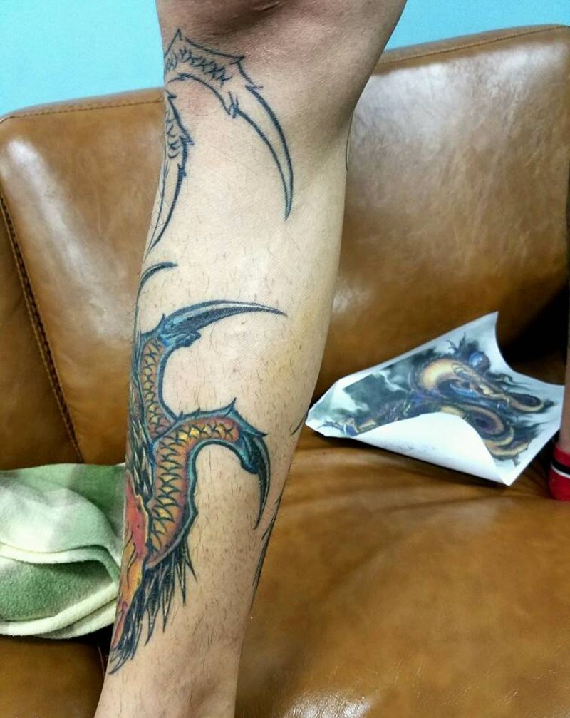 当前位置: 首页 >江苏省徐州市纹身店-针命天子·刺青纹身图案>小腿龙上色完成纹身图片