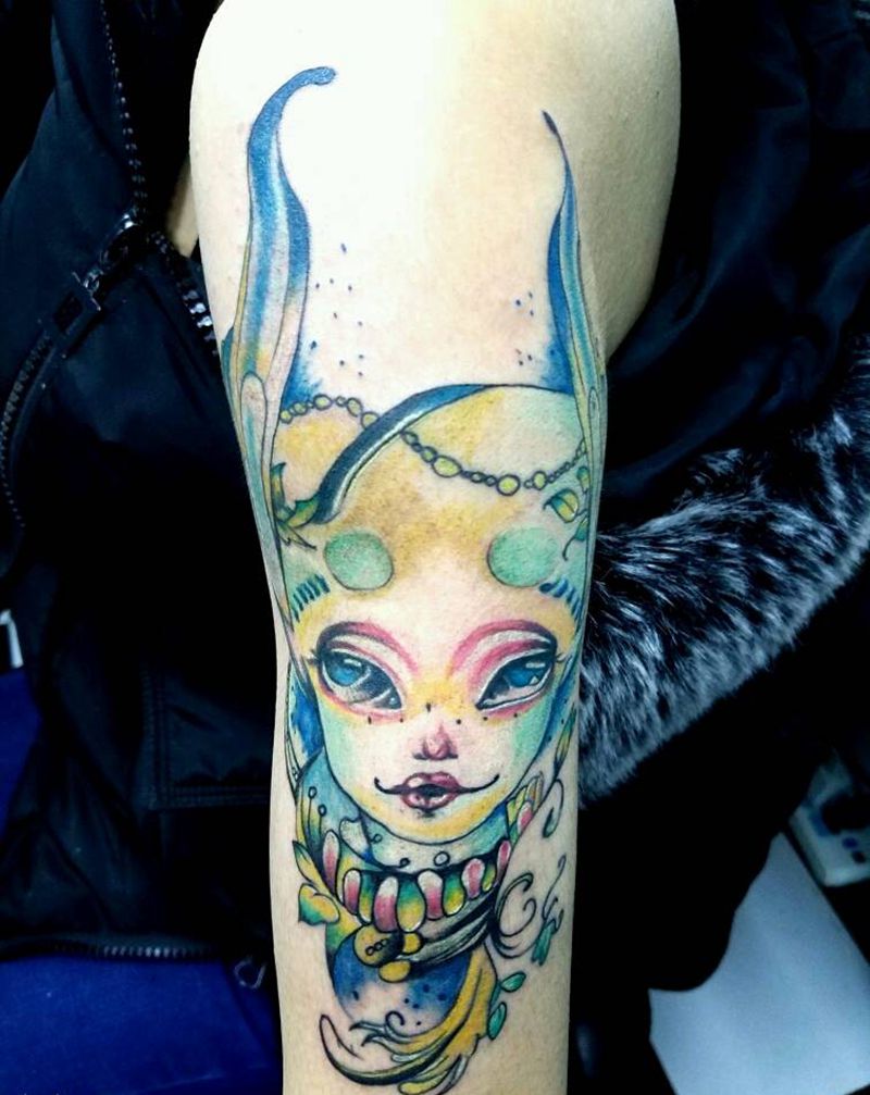 当前位置: 首页 >江苏省徐州市纹身店-针命天子·刺青纹身图案>上臂彩色小图纹身图片
