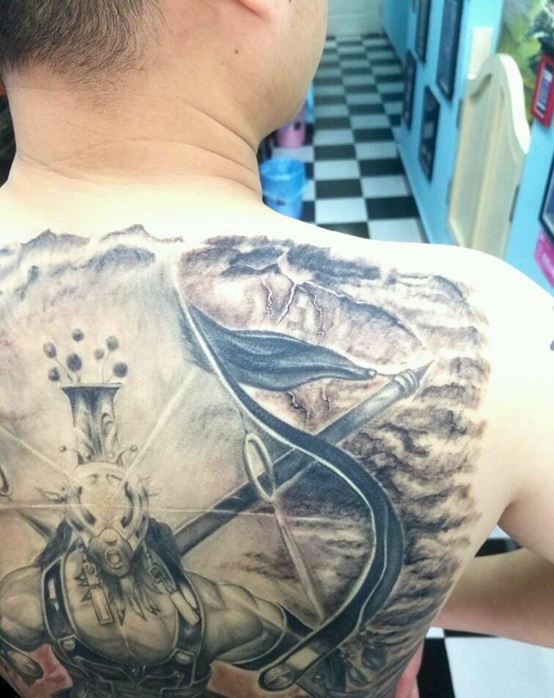 • 纹身吧推荐的披肩图腾半胛纹身图案作品展示