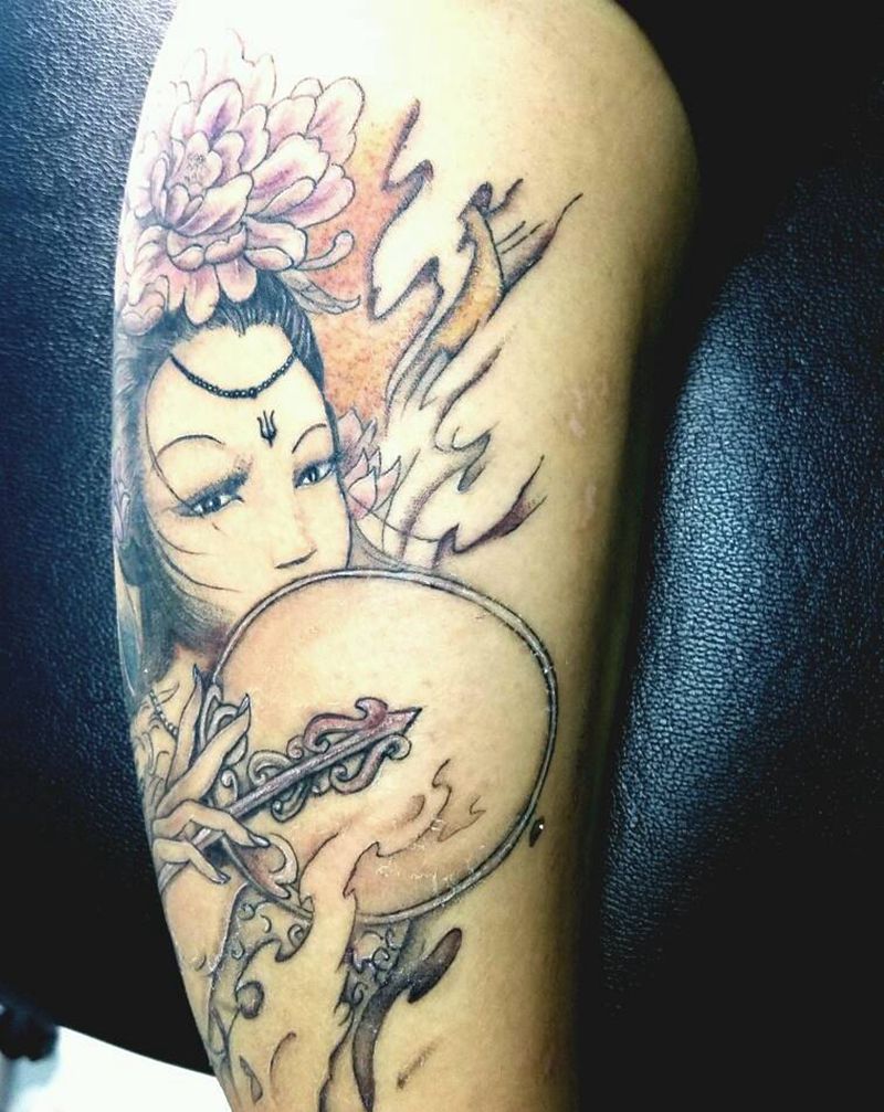 小腿彩色艺妓 皮肤没完全恢复好纹身图片