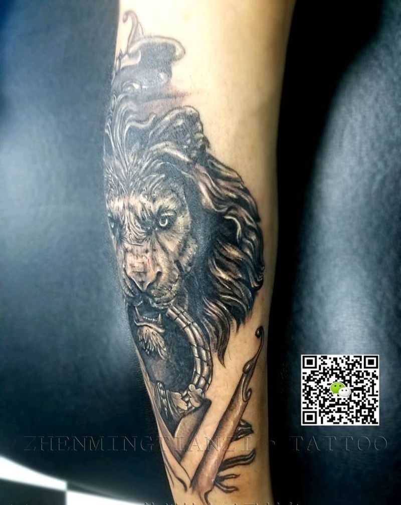 当前位置: 首页 >江苏省徐州市纹身店-针命天子·刺青纹身图案>兽面衔环 狮面完成纹身图片