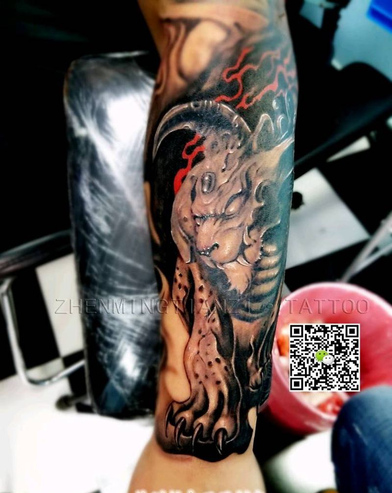 当前位置: 首页 >江苏省徐州市纹身店-针命天子·刺青纹身图案>黑灰花臂神兽完工纹身图片