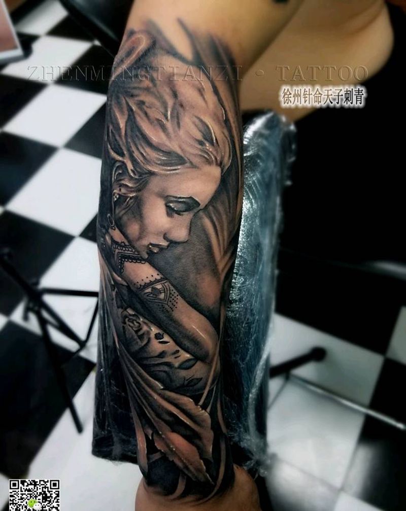 小臂 美女天使完工纹身图片