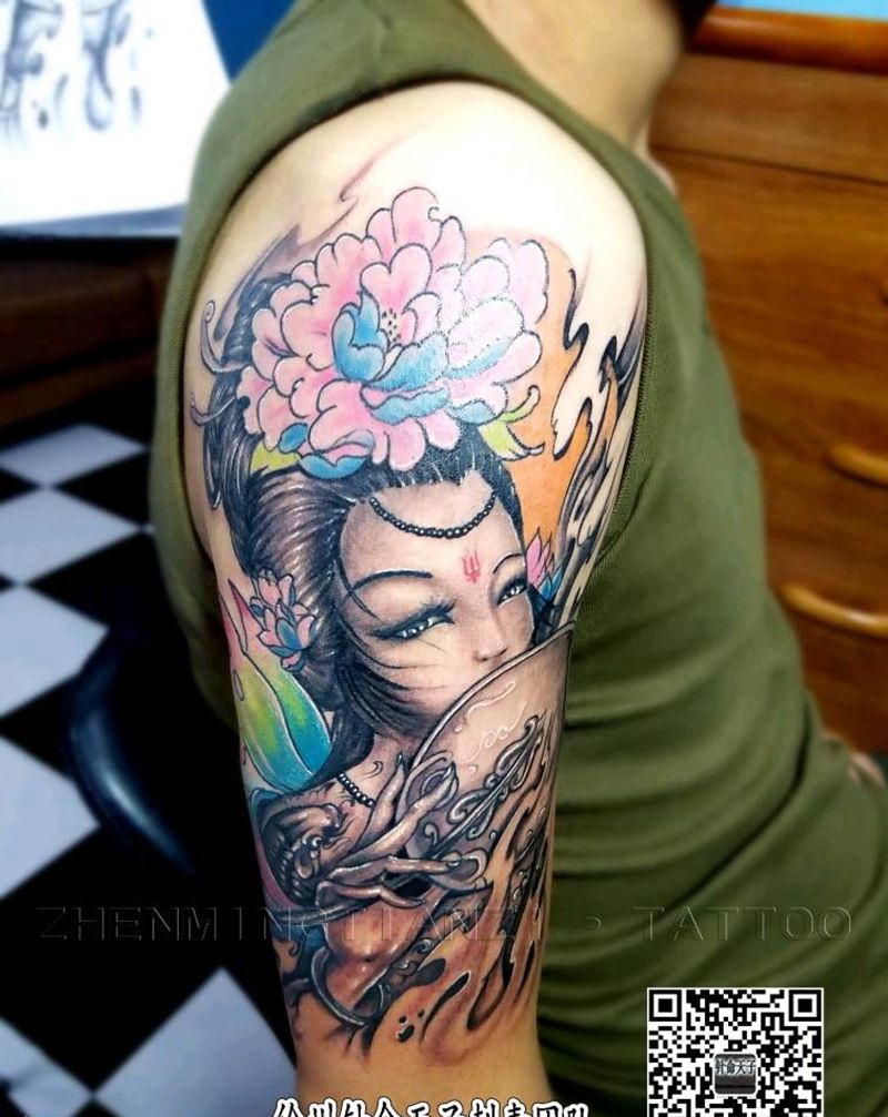 当前位置: 首页 >江苏省徐州市纹身店-针命天子·刺青纹身图案>花臂进行中 上臂艺妓完工纹身图片