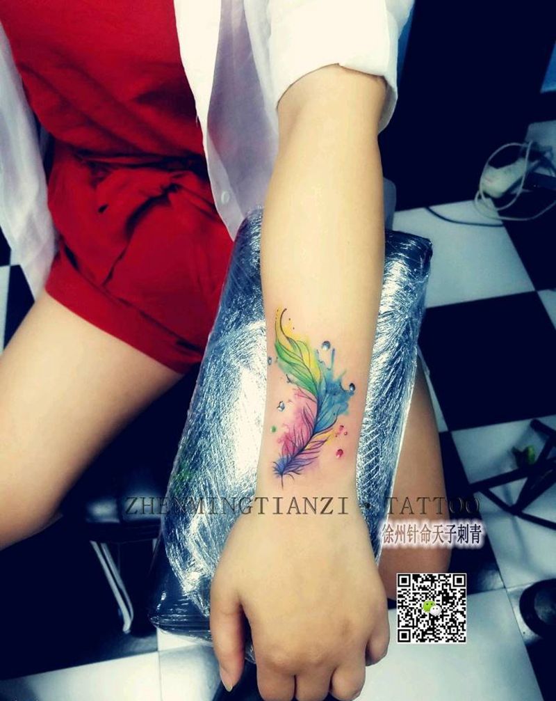 当前位置: 首页 >江苏省徐州市纹身店-针命天子·刺青纹身图案>遮盖疤痕 泼墨羽毛纹身图片