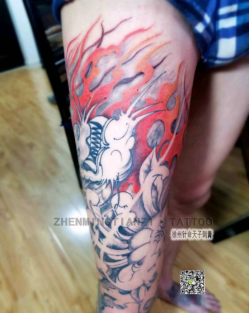 • T网红王老大花腿龙纹身图片_腿部新传统纹身图案