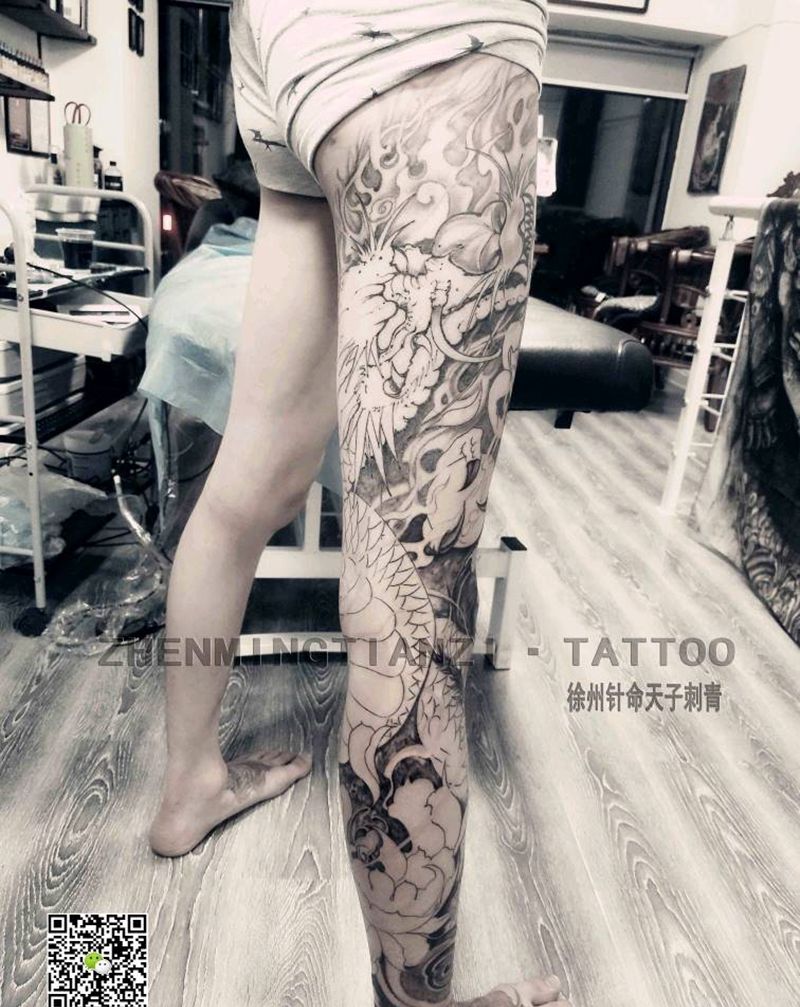 • T网红王老大花腿龙纹身图片_腿部新传统纹身图案