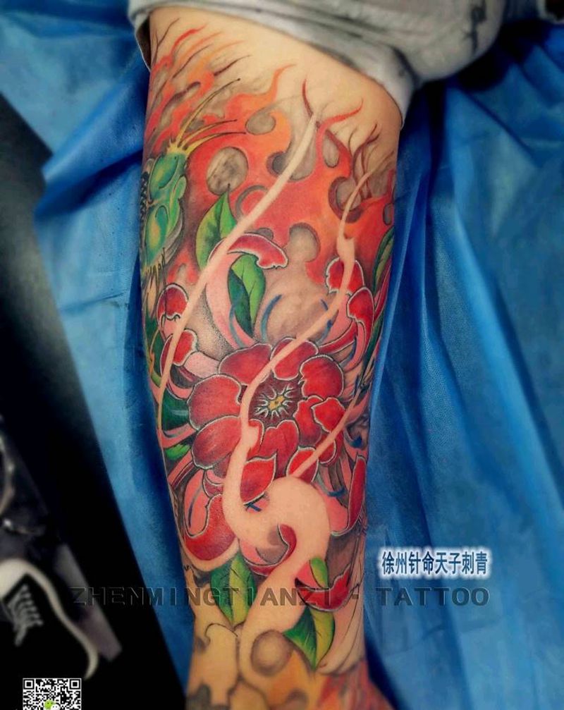 • T网红王老大花腿龙纹身图片_腿部新传统纹身图案