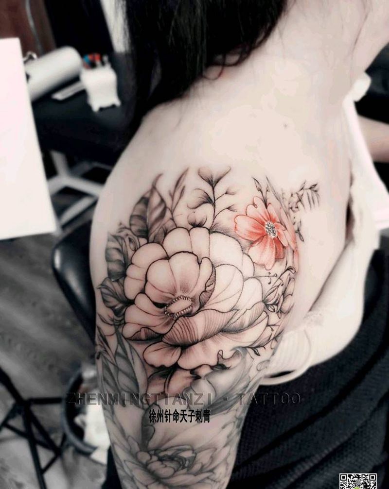• 女性大花胸纹身_43张霸气漂亮的女性大花胸纹身图案作品