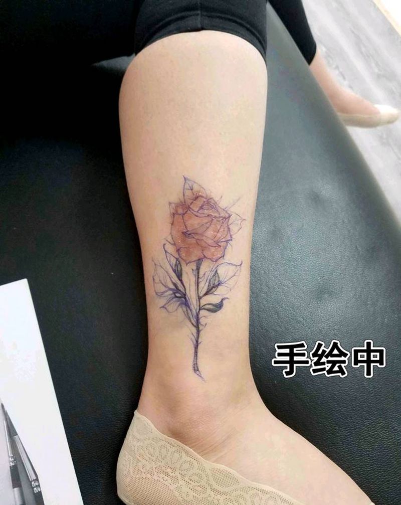 遮盖烫伤纹身图片_腿部Old School纹身图案