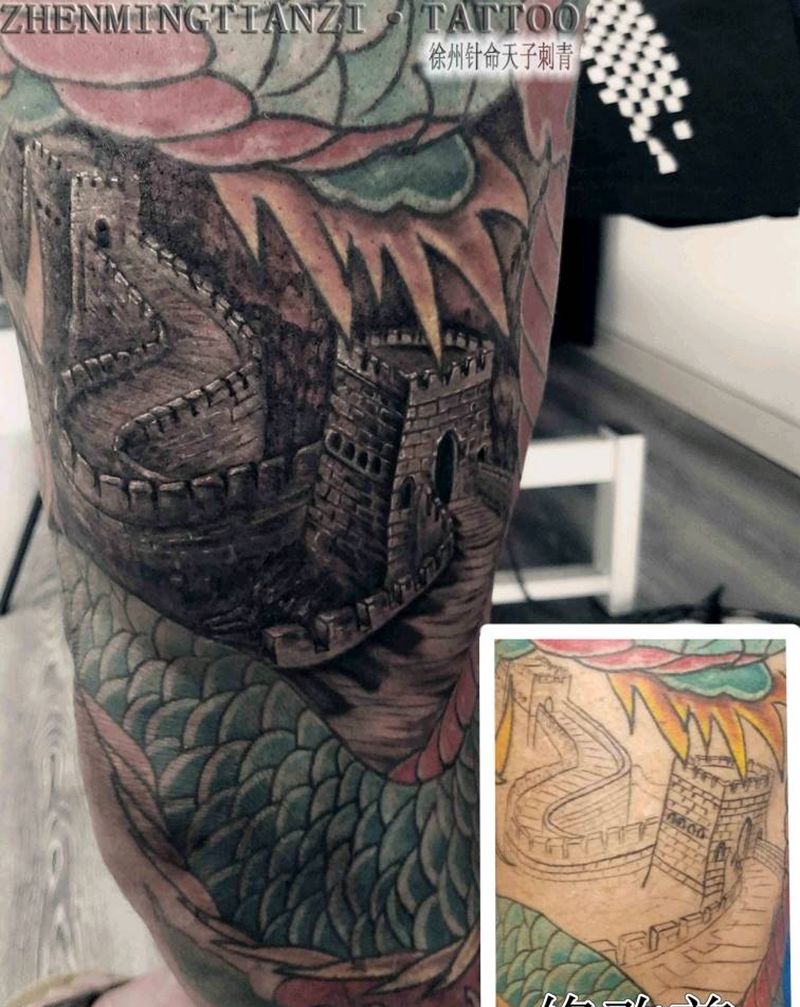 • T网红王老大花腿龙纹身图片_腿部新传统纹身图案