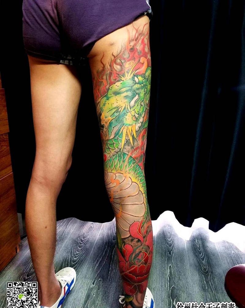 • T网红王老大花腿龙纹身图片_腿部新传统纹身图案