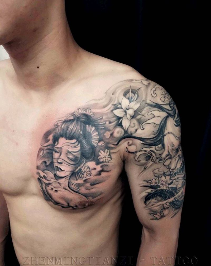 艺妓,般若 新传统半甲纹身图片_手臂胸部新传统纹身图案