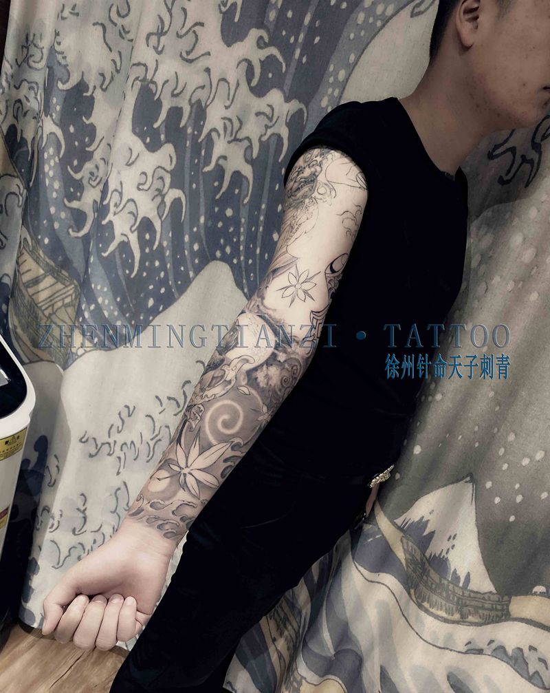 当前位置: 首页 >江苏省徐州市纹身店-针命天子·刺青纹身图案>新传统彩色花臂 未完成纹身图片_手臂新传统纹身图案