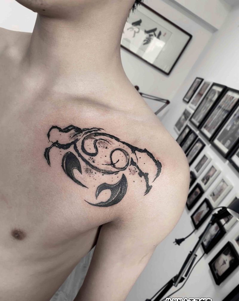 巨蟹座+字母组合纹身图片_胸部水墨纹身图案