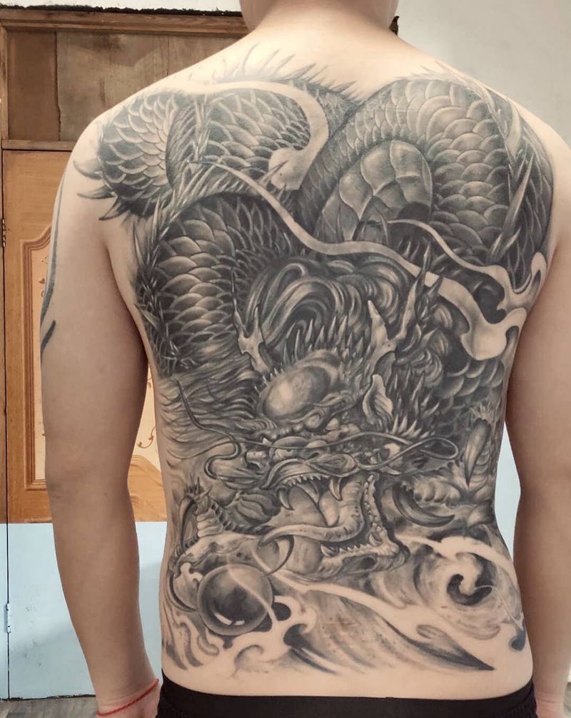• T云龙九郎纹身图片_背部老传统云龙九郎纹身图案