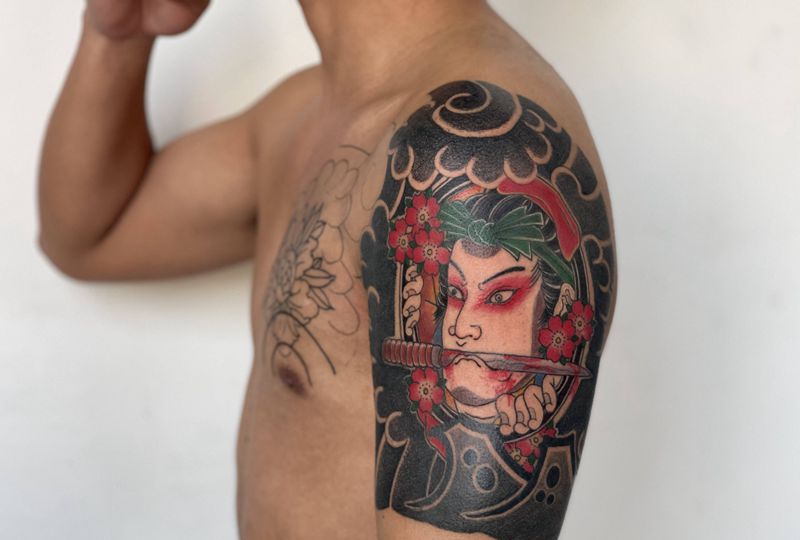 当前位置: 首页 >江苏省徐州市纹身店-也花刺青纹身图案>半甲纹身图片_胸部手臂新传统纹身图案